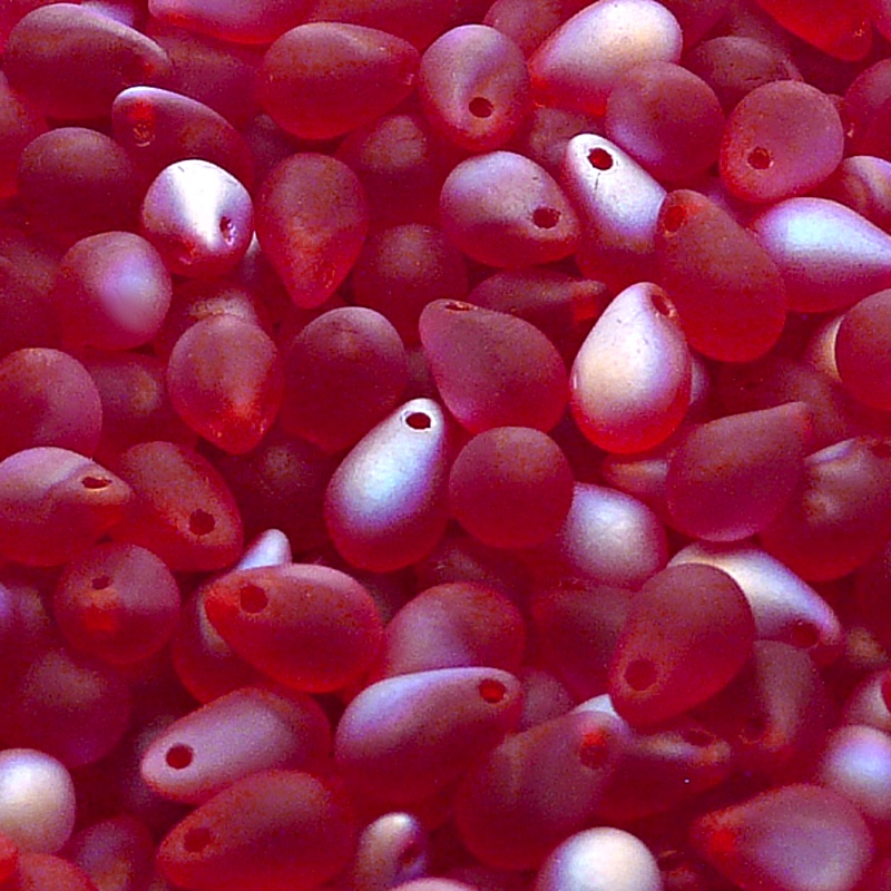 30ks České skleněné mačkané korálky kapky 6x9mm rubín/ AB polopokov matSkladem 14 ks46 Kč/ ks38,02 Kč bez DPH