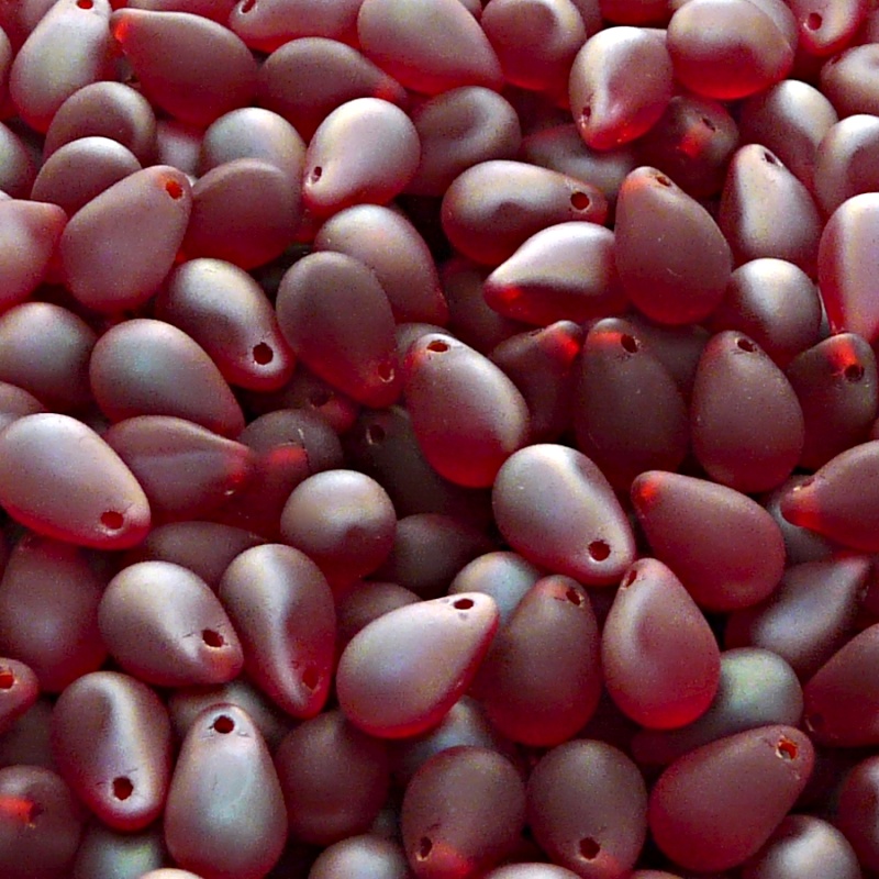 30ks České skleněné mačkané korálky kapky 6x9mm rubín/ celsian polopokov matSkladem 18 ks46 Kč/ ks38,02 Kč bez DPH