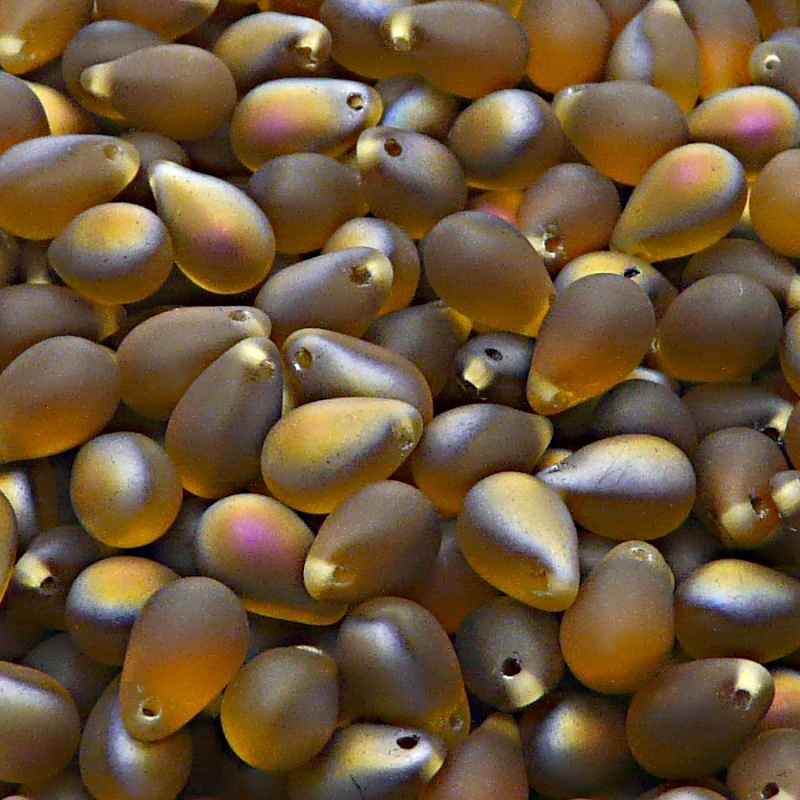 30ks České skleněné mačkané korálky kapky 6x9mm topas/ santander polopokov mat