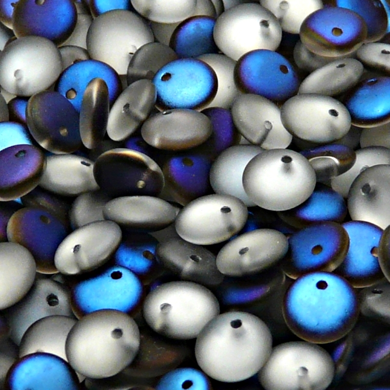 40ks České skleněné mačkané korálky čočka 8mm čirá/ azuro polopokov matSkladem 17 ks54 Kč/ ks44,63 Kč bez DPH