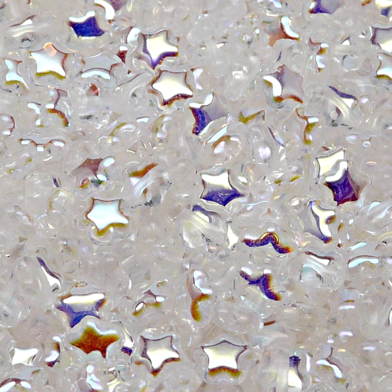40ks České skleněné mačkané korálky hvězdička 6mm čirá/ AB polopokovSkladem 27 ks26 Kč/ ks21,49 Kč bez DPH