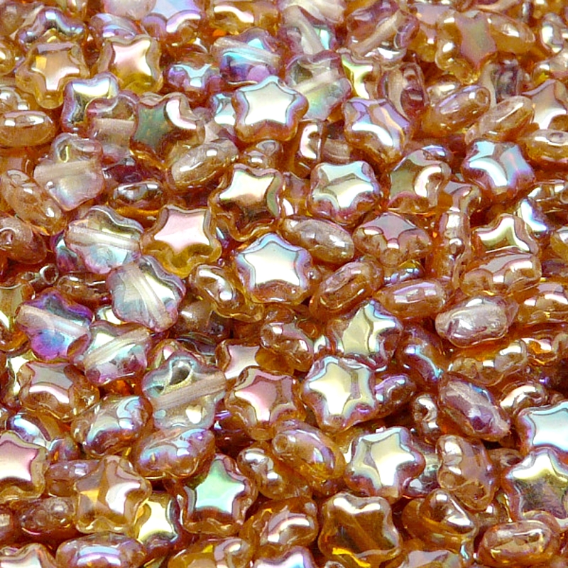 40ks České skleněné mačkané korálky hvězdička 6mm čirá/ oranžová duhaSkladem 30 ks32 Kč/ ks26,45 Kč bez DPH
