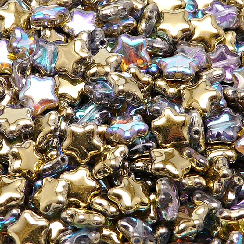 40ks České skleněné mačkané korálky hvězdička 8mm čirá/ zlatá duhaSkladem 30 ks56 Kč/ ks46,28 Kč bez DPH