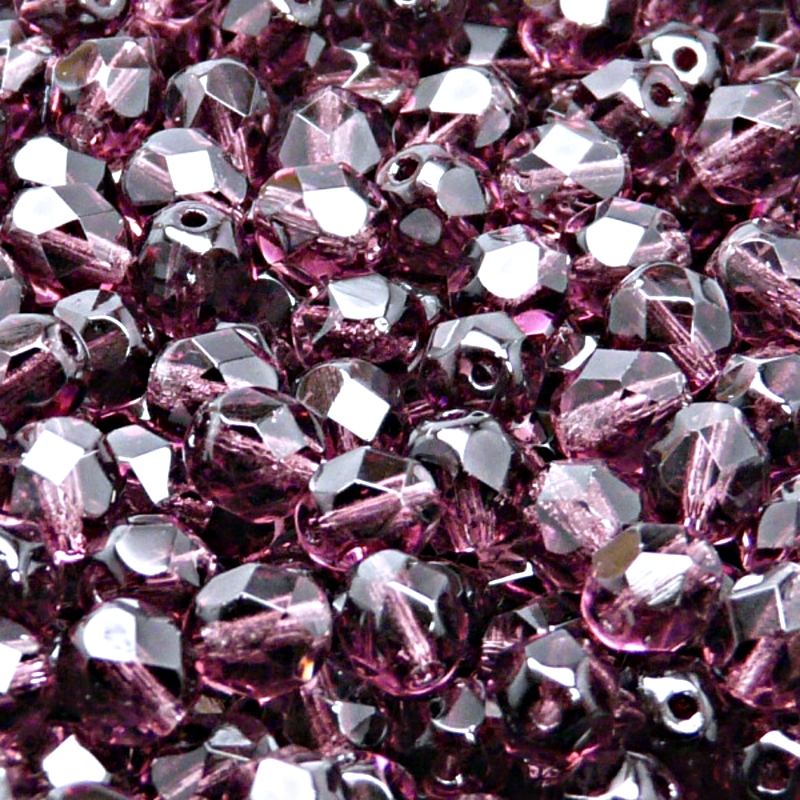 50ks České skleněné broušené ohňovky kulička 6mm ametyst