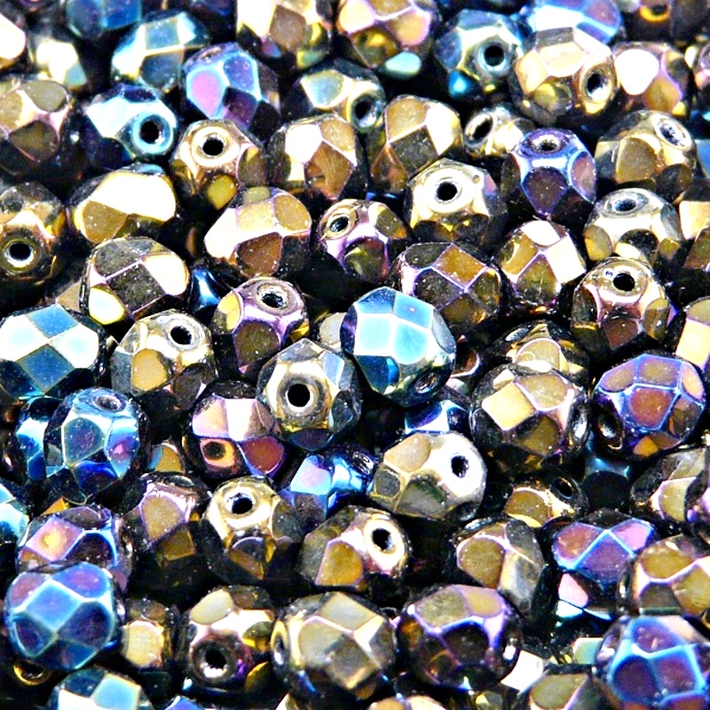 50ks České skleněné broušené ohňovky kulička 6mm černá/ rainbow irisSkladem 15 ks48 Kč/ ks39,67 Kč bez DPH