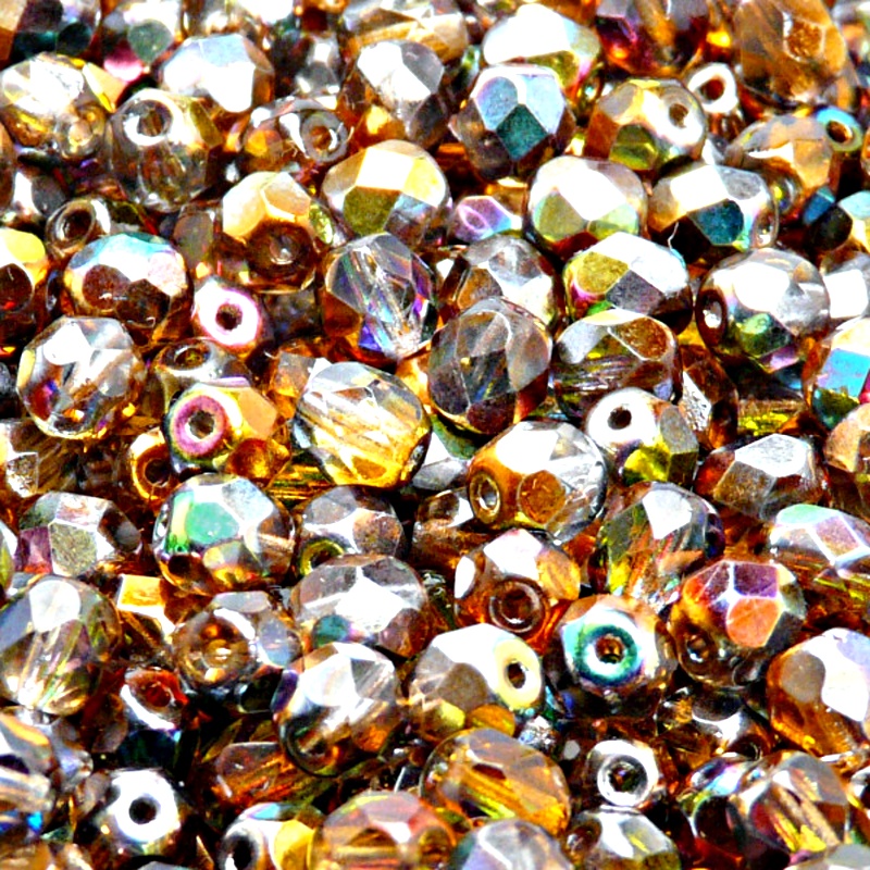 50ks České skleněné broušené ohňovky kulička 6mm čirá/ oranžovo šedý magicSkladem 35 ks65 Kč/ ks53,72 Kč bez DPH