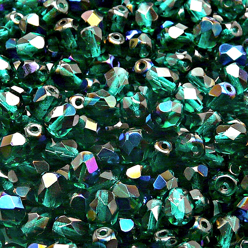 50ks České skleněné broušené ohňovky kulička 6mm emerald/ azuro polopokovSkladem 27 ks52 Kč/ ks42,98 Kč bez DPH