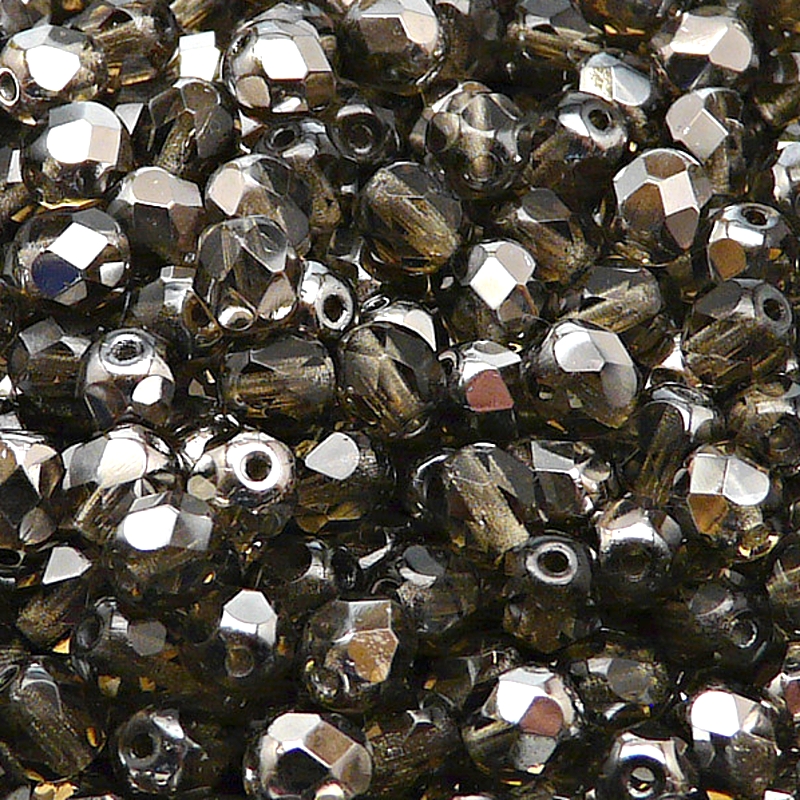 50ks České skleněné broušené ohňovky kulička 6mm kouřová šedá/ chrom polopokov