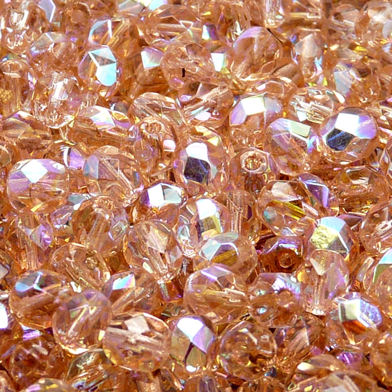 - 50ks České skleněné broušené ohňovky kulička 6mm rozalín/ AB polopokov