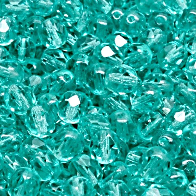 - 50ks České skleněné broušené ohňovky kulička 6mm světle zelená akva