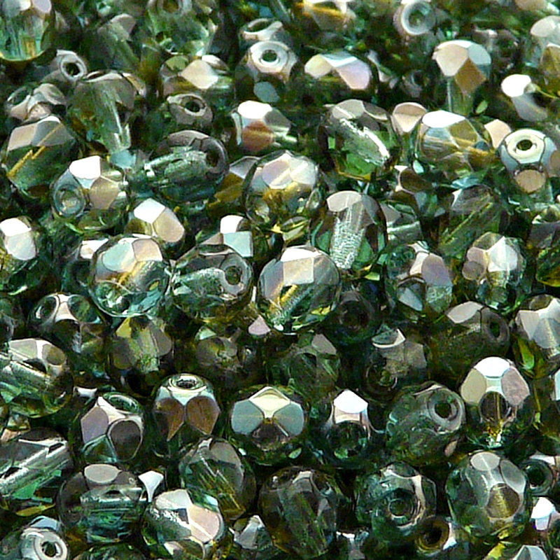 - 50ks České skleněné broušené ohňovky kulička 6mm světle zelená akva/ celsian polopokov