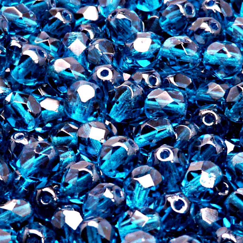 50ks České skleněné broušené ohňovky kulička 6mm tmavá akva