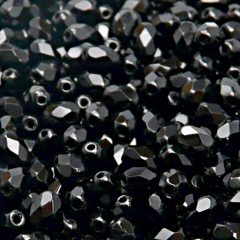 50ks České skleněné broušené tvarové ohňovky olivy 6x4mm černá