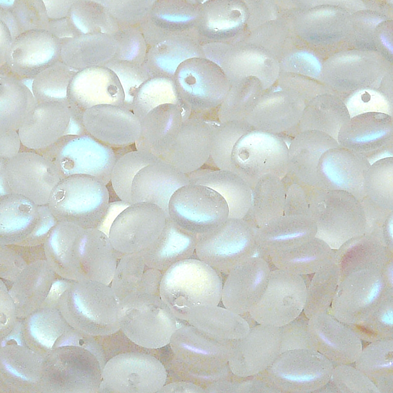 50ks České skleněné mačkané korálky čočka 6mm čirá/ AB polopokov mat