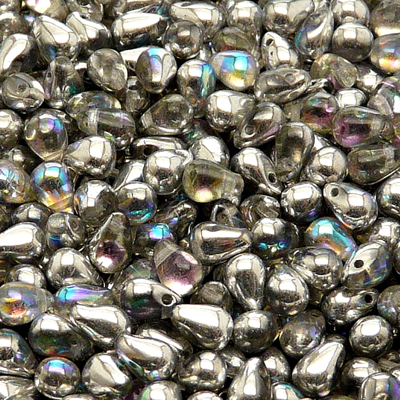 50ks České skleněné mačkané korálky kapky 4x6mm čirá/ stříbrná duhaSkladem 13 ks44 Kč/ ks36,36 Kč bez DPH