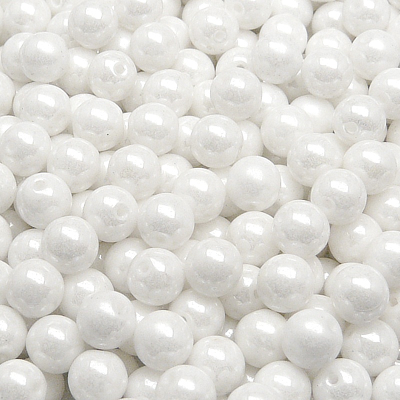 50ks České skleněné mačkané korálky kulička 6mm bílá/ bílý listrSkladem 26 ks30 Kč/ ks24,79 Kč bez DPH
