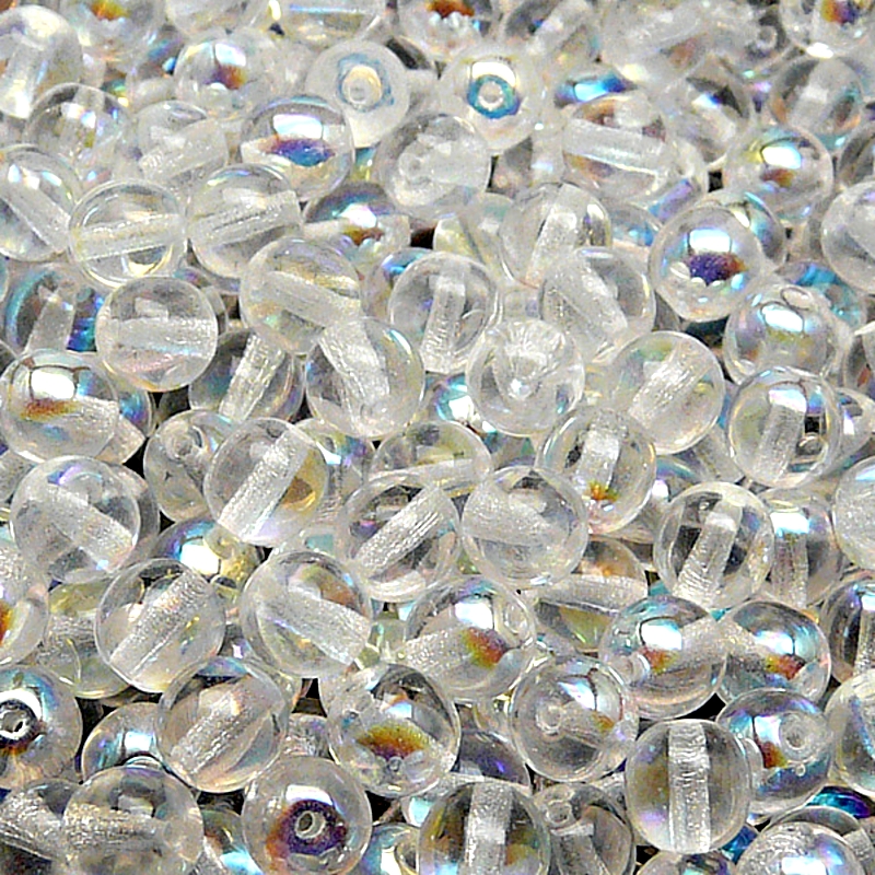 50ks České skleněné mačkané korálky kulička 6mm čirá/ AB polopokovSkladem 13 ks28 Kč/ ks23,14 Kč bez DPH