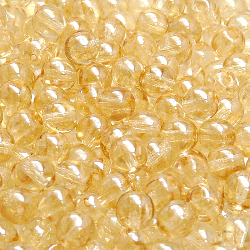 50ks České skleněné mačkané korálky kulička 6mm čirá/ béžový listr