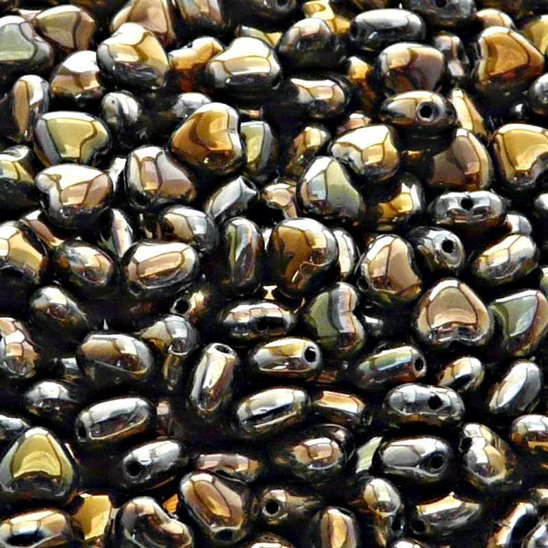 50ks České skleněné mačkané korálky srdíčko 6mm černá/ valentinit celopokovSkladem 20 ks52 Kč/ ks42,98 Kč bez DPH