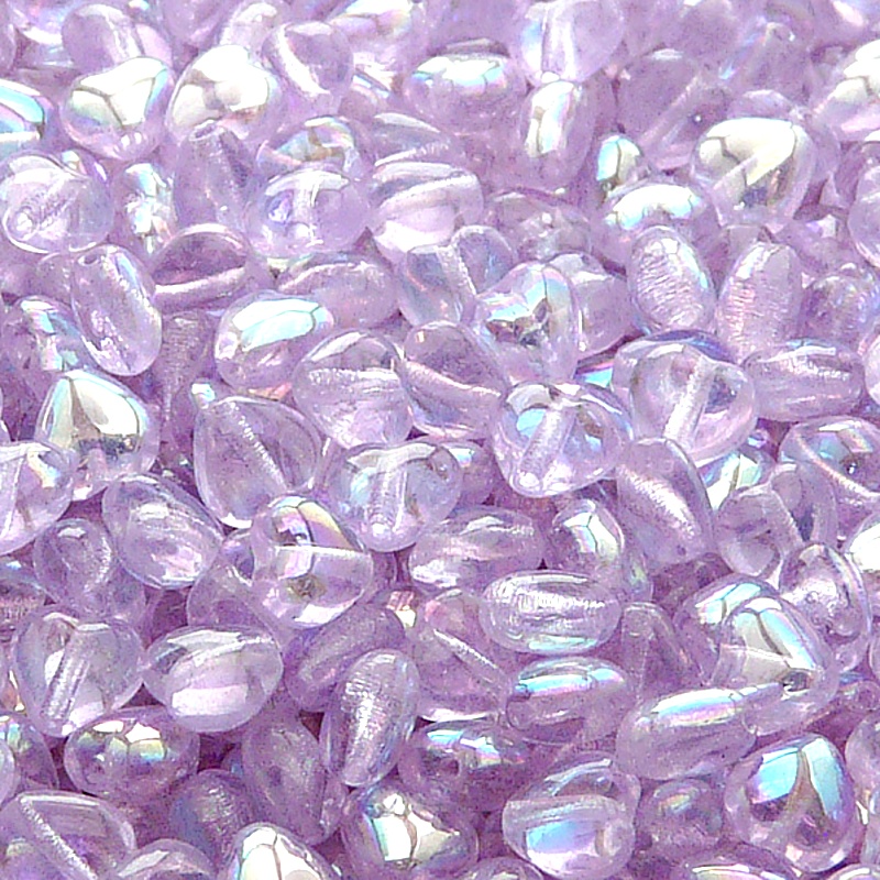50ks České skleněné mačkané korálky srdíčko 6mm růžový alexandrit/ AB polopokovSkladem 16 ks86 Kč/ ks71,07 Kč bez DPH