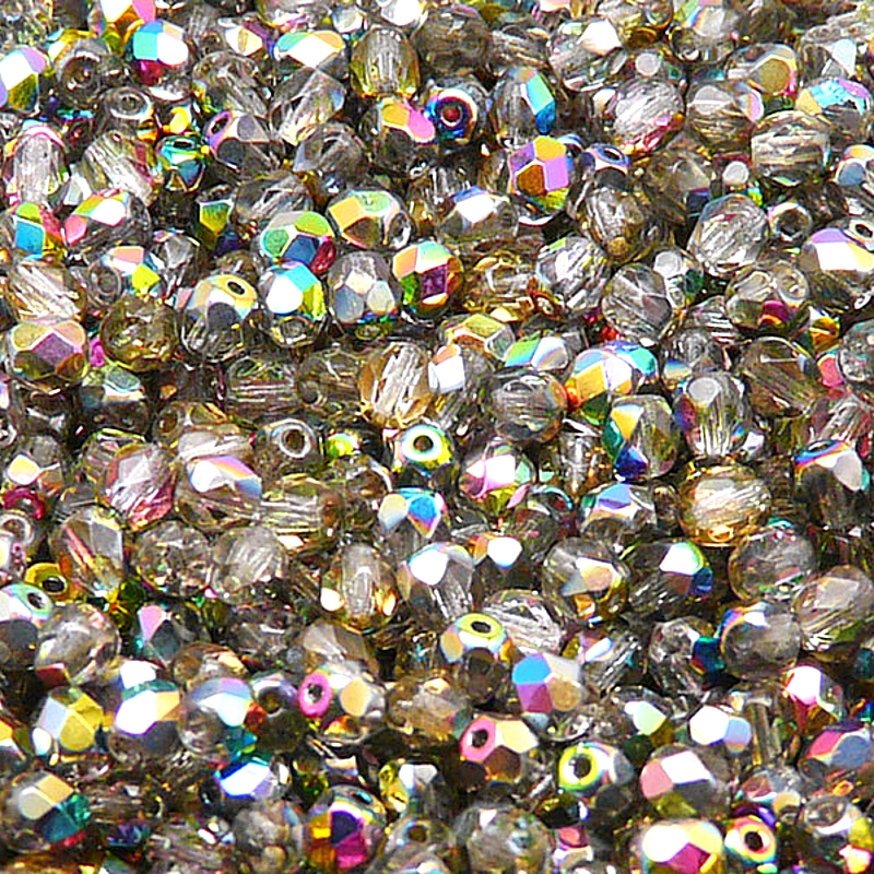 100ks České skleněné broušené ohňovky kulička 4mm čirá/ vitrail polopokov
