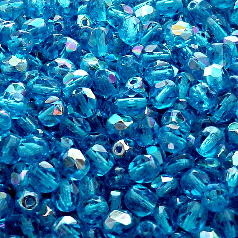 80ks České skleněné broušené ohňovky kulička 5mm akva/ AB polopokovSkladem 30 ks62 Kč/ ks51,24 Kč bez DPH
