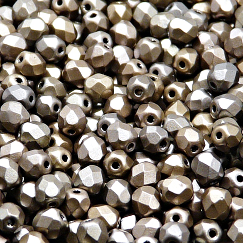 80ks České skleněné broušené ohňovky kulička 5mm čirá/ bronz šedý duhový matný