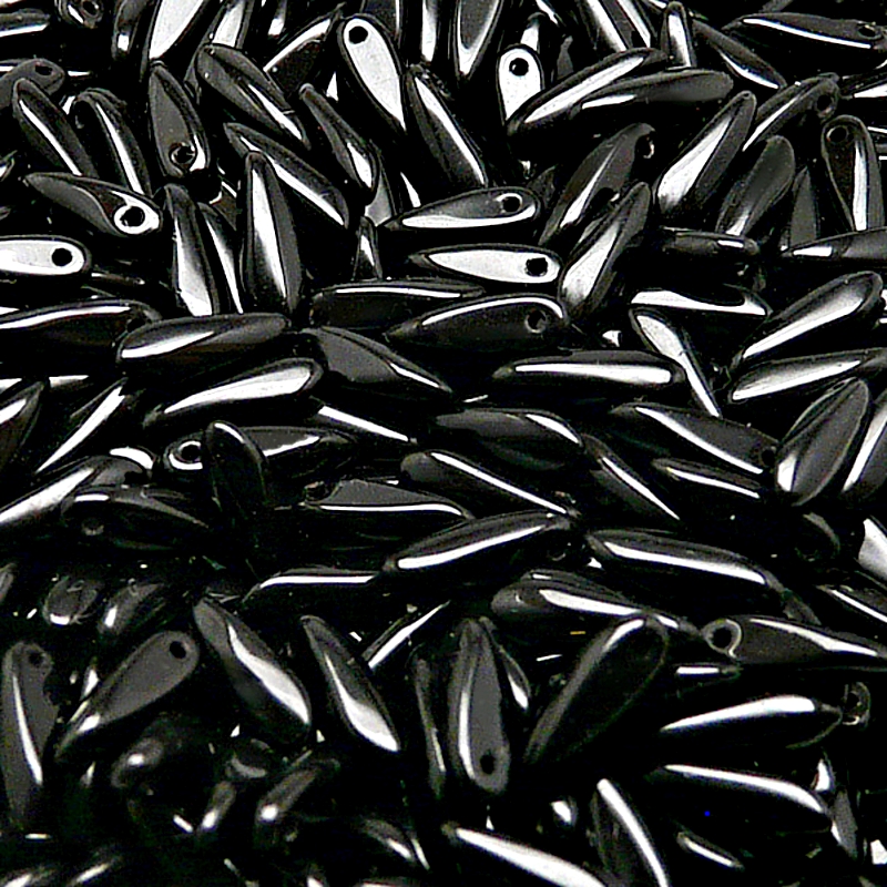 80ks České skleněné mačkané korálky jazýčky 3x11mm černáSkladem 35 ks36 Kč/ ks29,75 Kč bez DPH